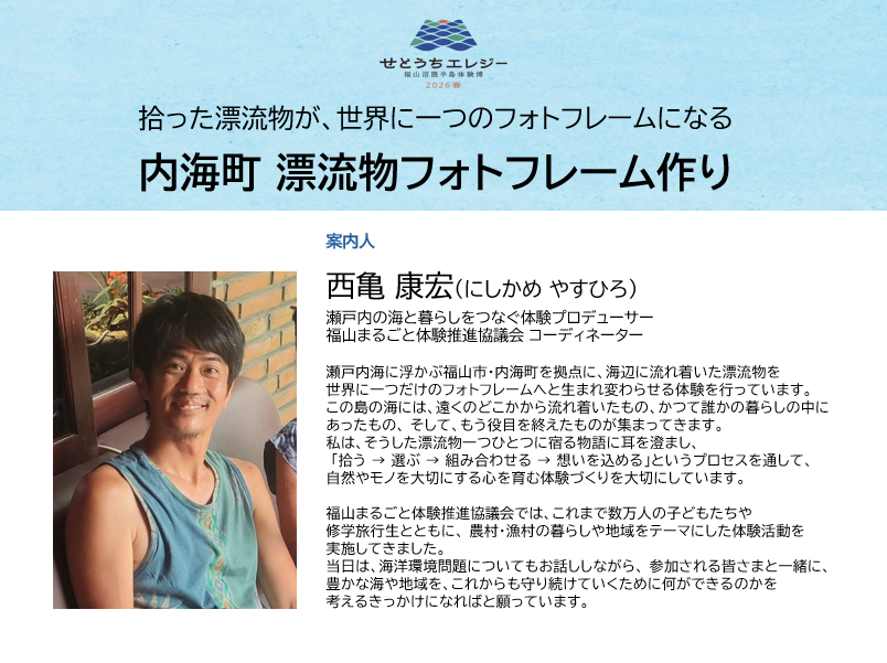 世界に一つ!内海町 漂流物フォトフレーム作り