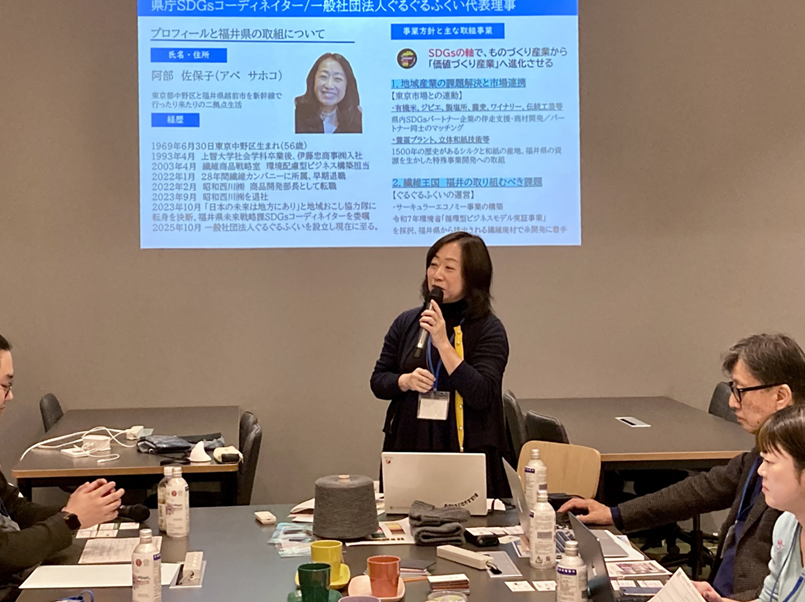 「地方の当たり前は都会の宝」という視点で地域資源と都市部ニーズを繋ぐマッチング事例や、単なる環境配慮に留まらず、産地の技術を結集して「品質で選ばれるブランド」を構築する重要性を強調。小ロットや希少性を強みに変え、日本の繊維産業の未来を切り拓く熱い姿勢に、多くの参加者が刺激を受けました。